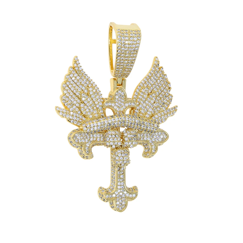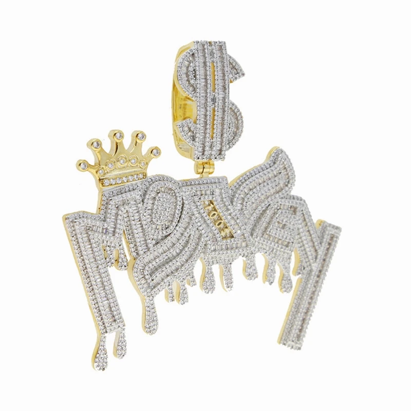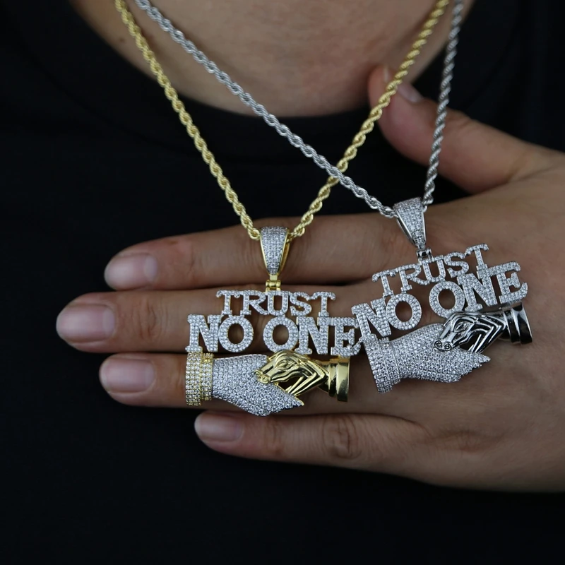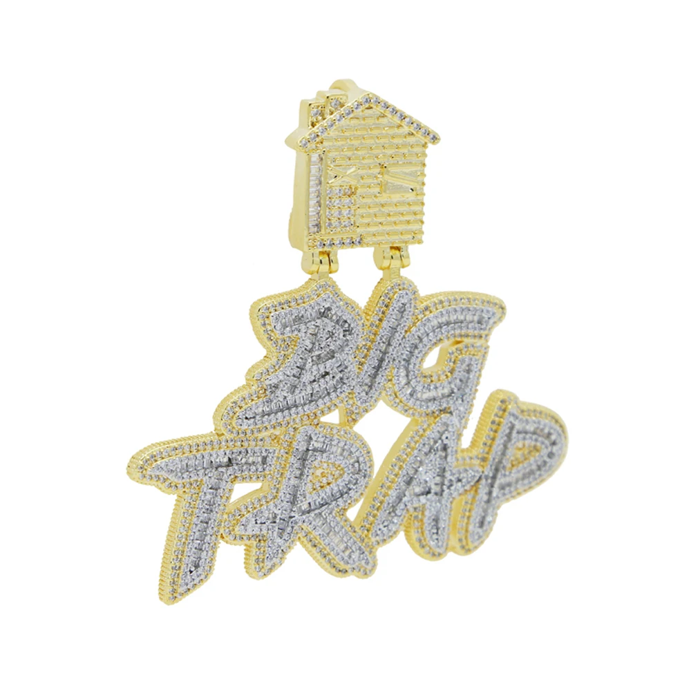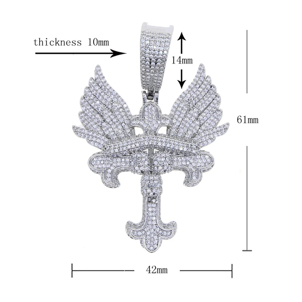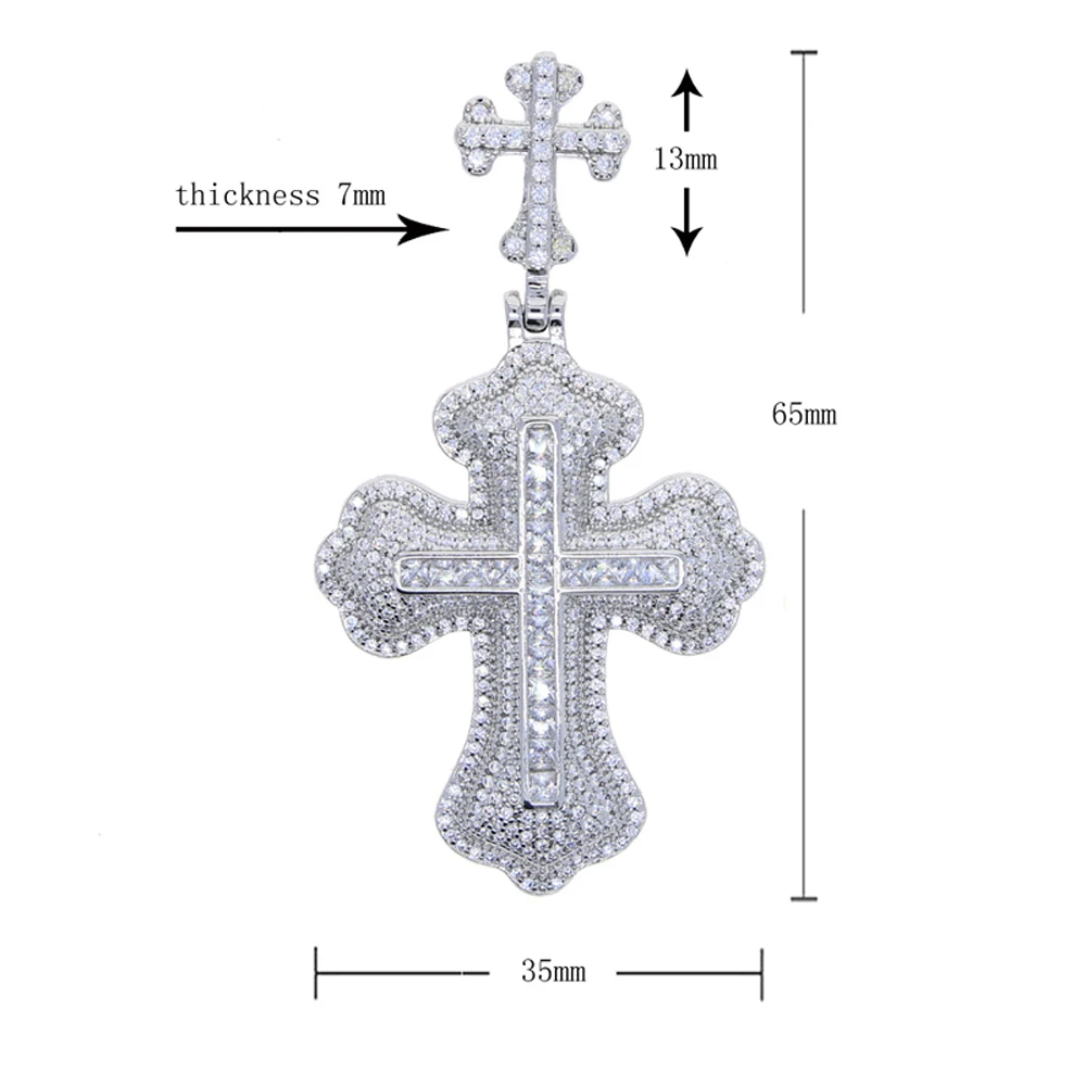 New Iced Out Bling CZ Letter Cross Pendant Necklace Various Design 5A Zircon Two Tone Color Badge Charm Men's Hip Hop Jewelry