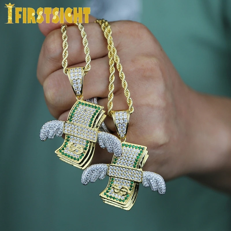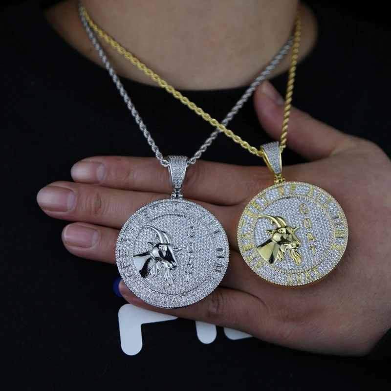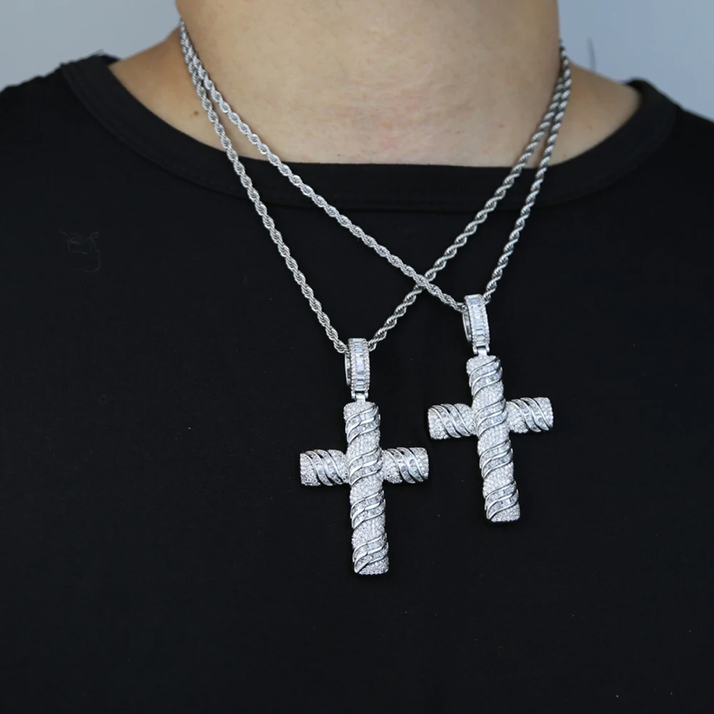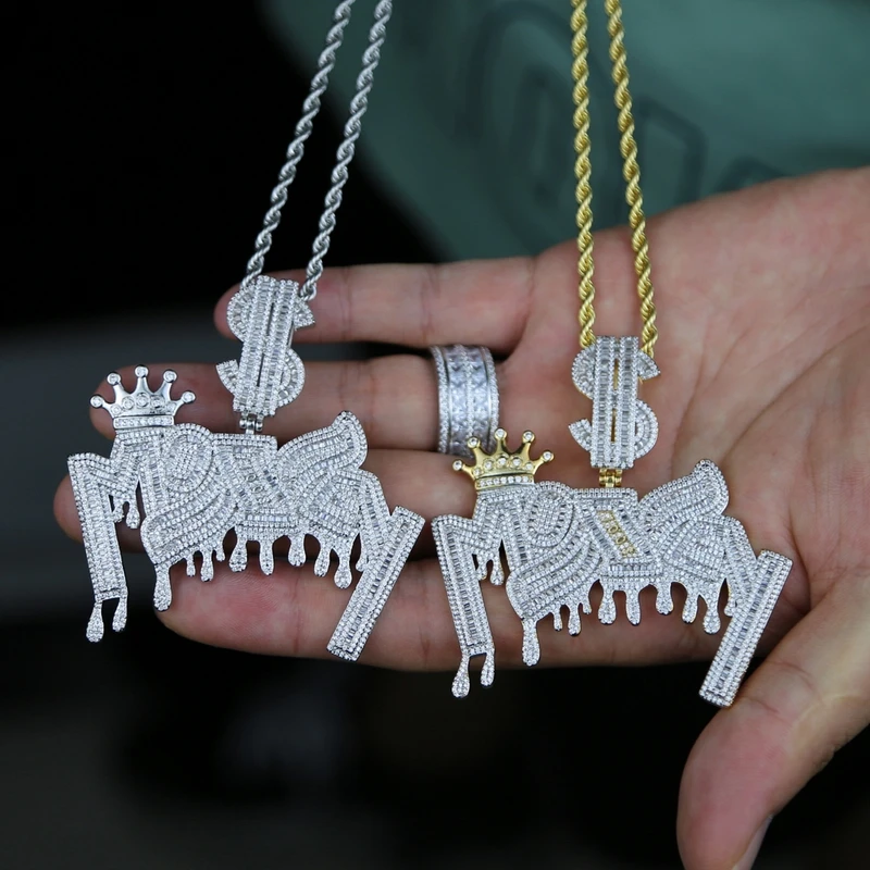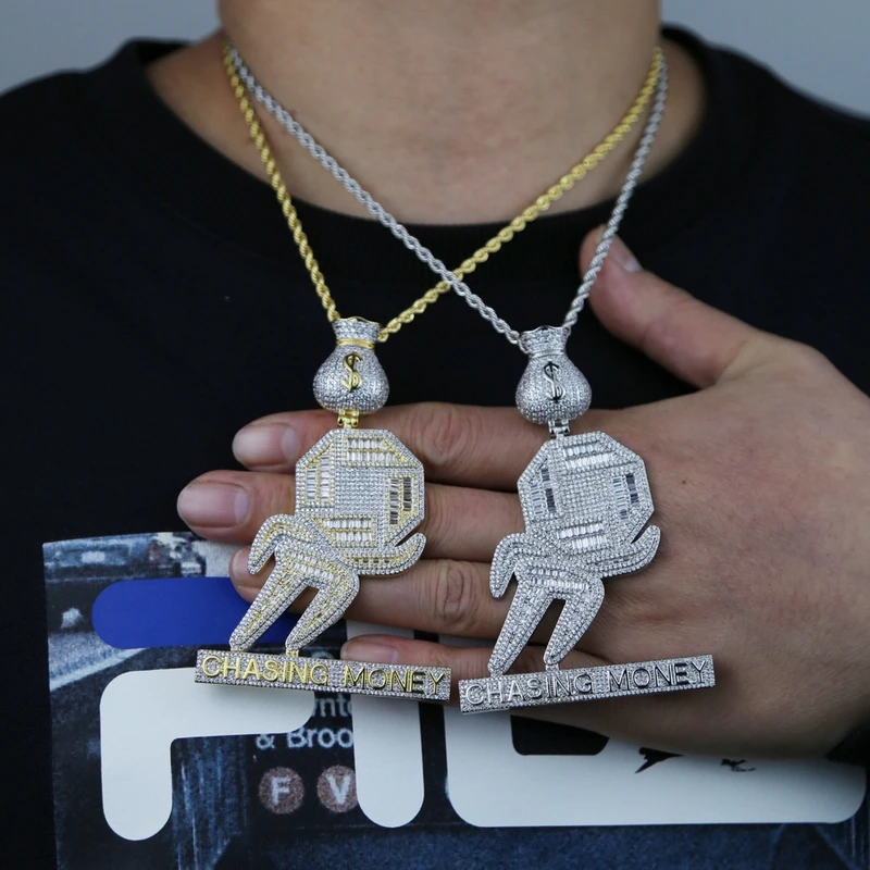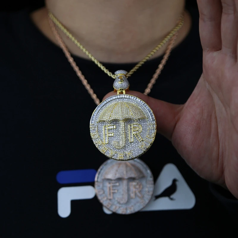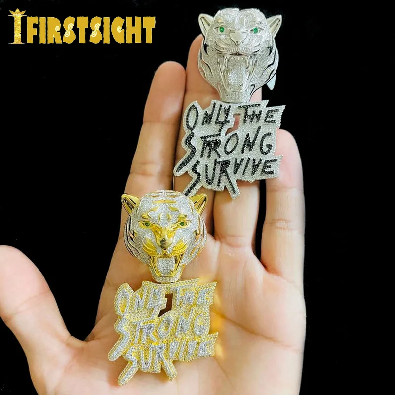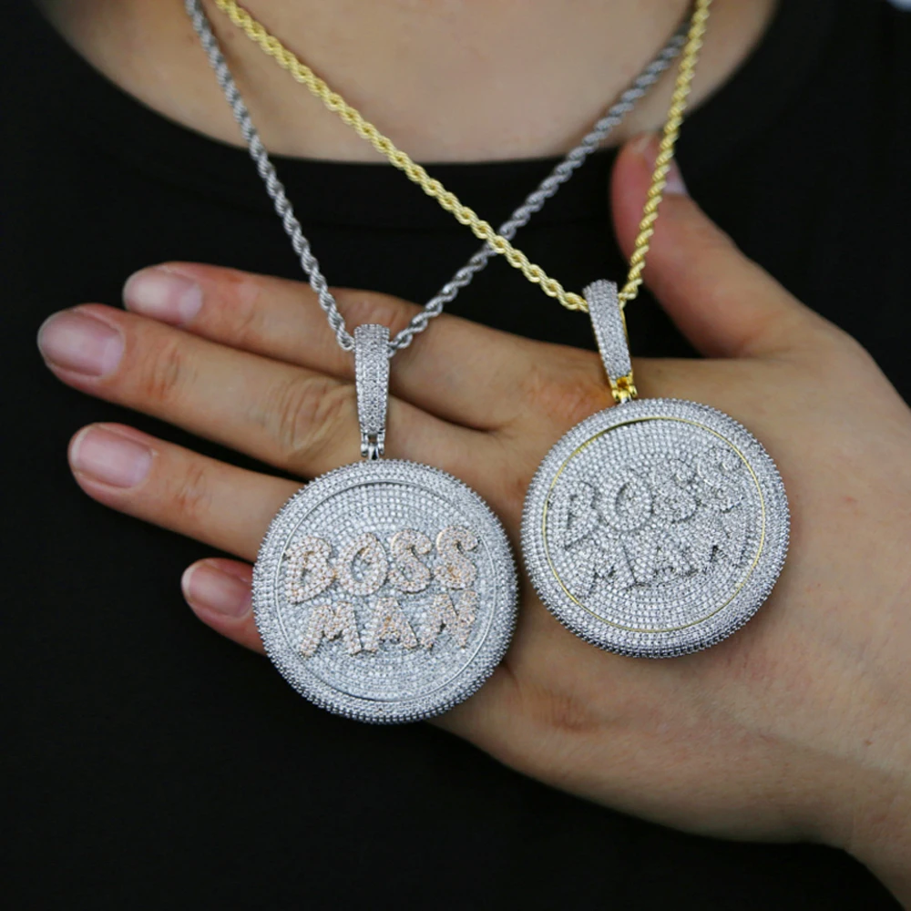 New Iced Out Bling CZ Letter Cross Pendant Necklace Various Design 5A Zircon Two Tone Color Badge Charm Men's Hip Hop Jewelry