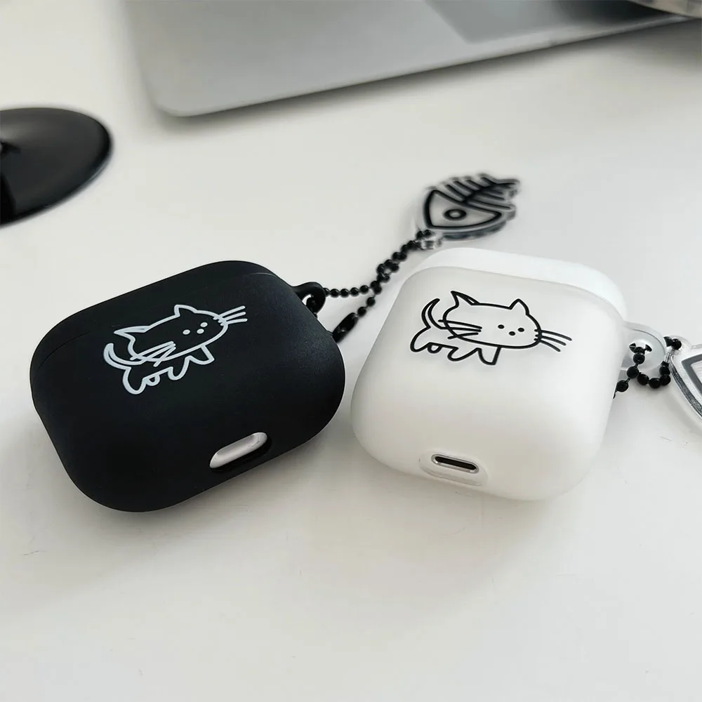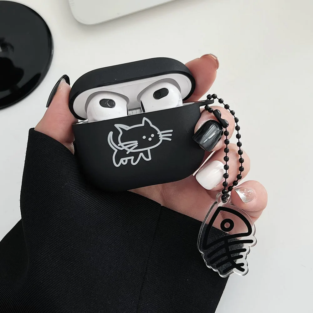 Cartoon Cat Lovers Matte Protective Case For AirPods 1/2/3/4 Soft Cute Cover for AirPods Pro 2 Bluetooth Earphone Case Keyring