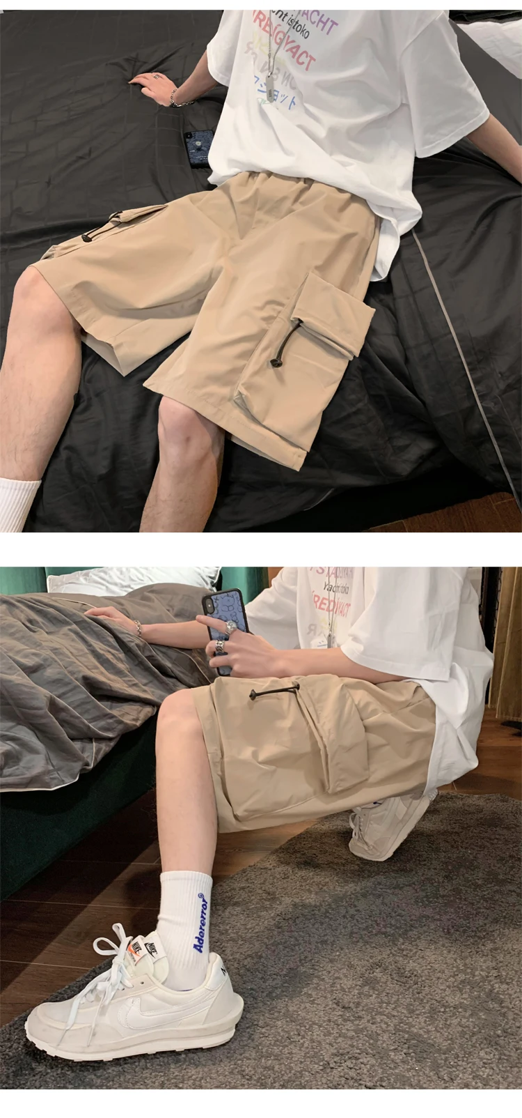 Men Casual Shorts Solid Leisure All-match Multi-pockets Summer Oversize S-3XL Harajuku Baggy Cargo Trousers Streetwear Ins BF