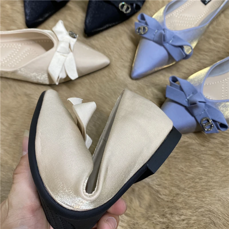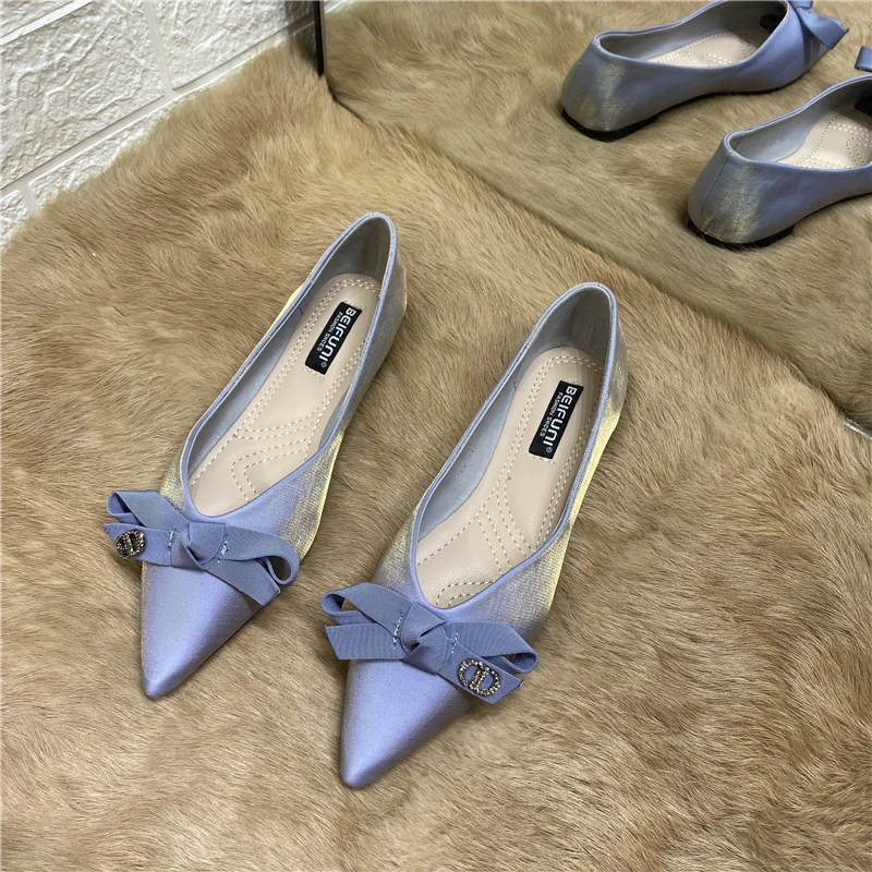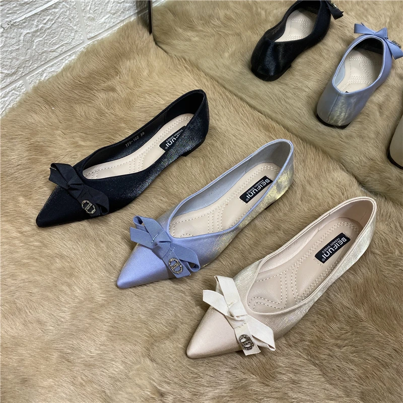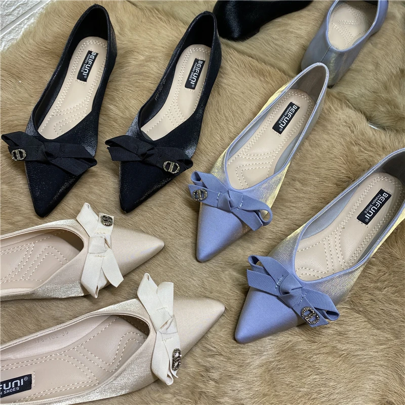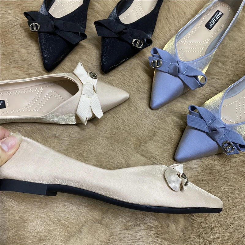 Bow Pointed Single Shoes Women's Flat Ballet Women's Shoes Spring 2022 New Versatile Soft Sole Bridesmaid Shoes Large Size 46