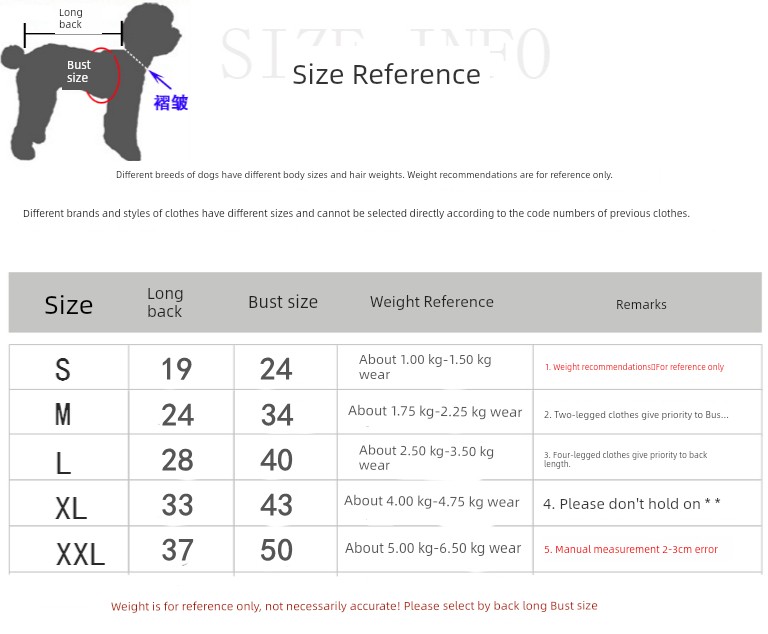 Applicable size: M length 24 chest 34 about 1.75 kg-2.25 kg wear
