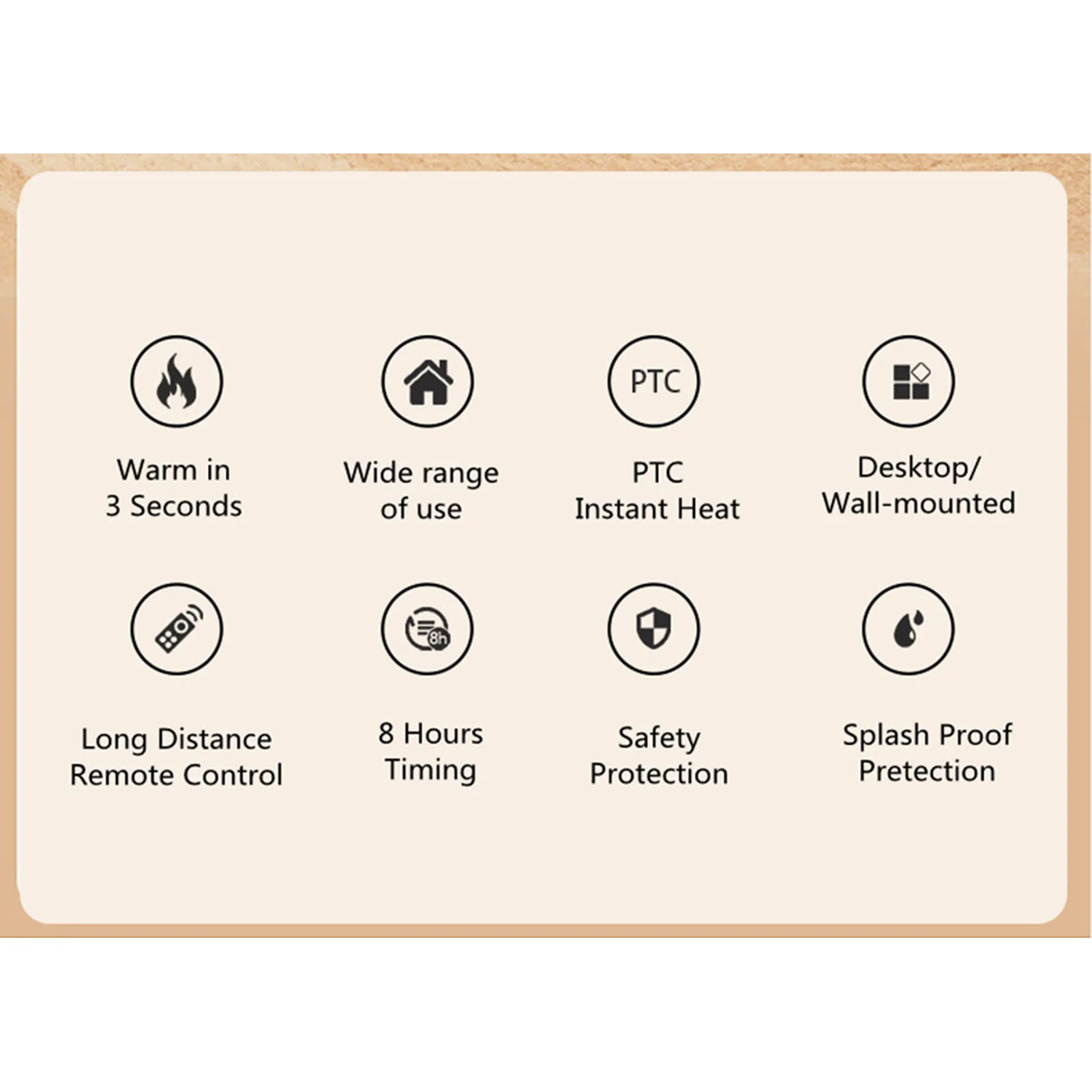 Space Heater for Indoor with Remote Wall Mounted Conditioner Low Noise Timing Function for Home Office EU Plug 220V