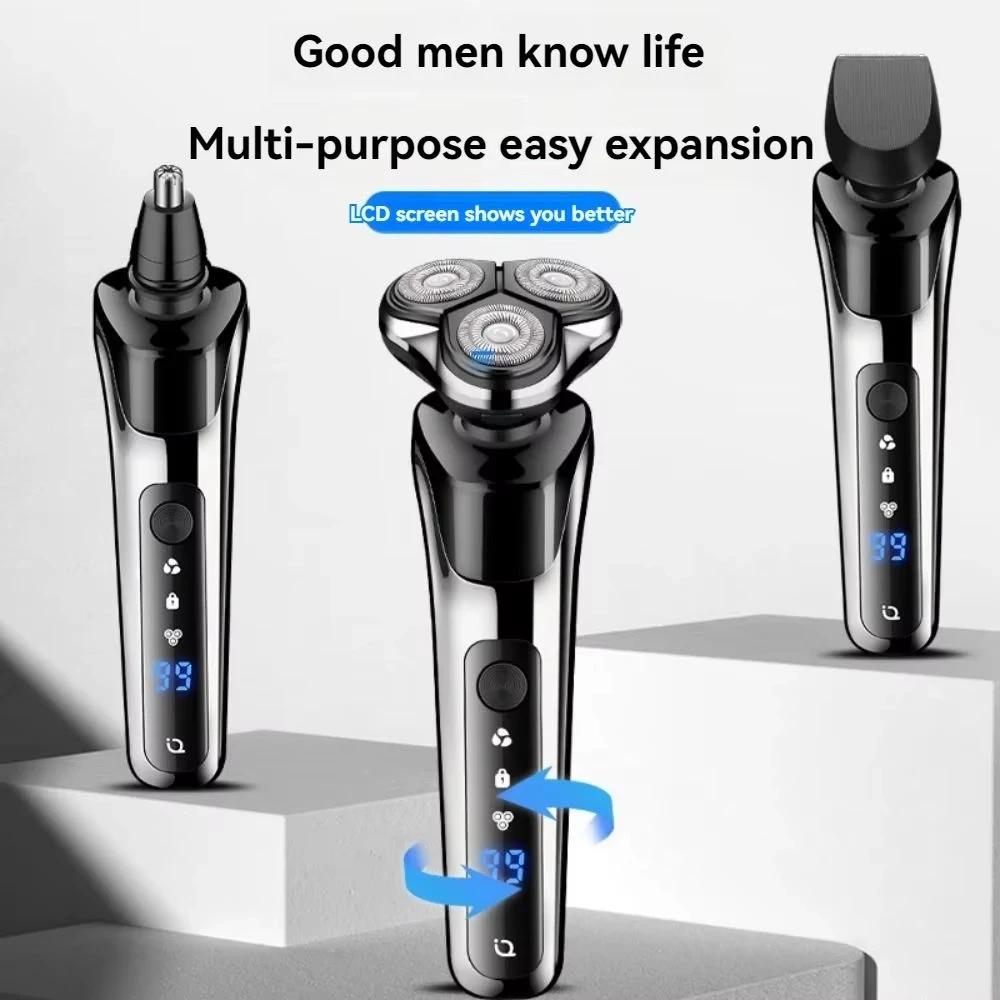 3. One machine with three uses to meet different needs: the blade head is replaceable, in addition to the razor head, it is also equipped with a sideburn knife and a nose hair trimmer.