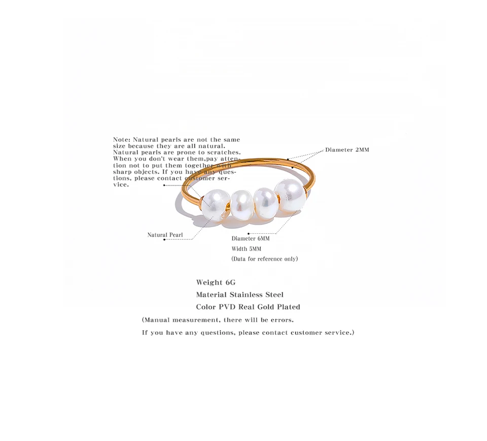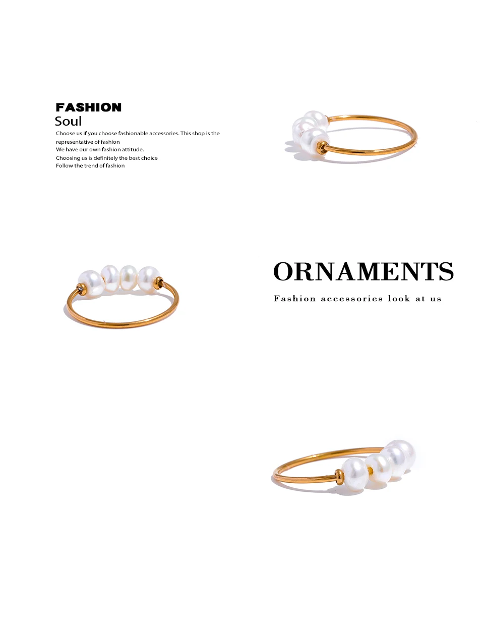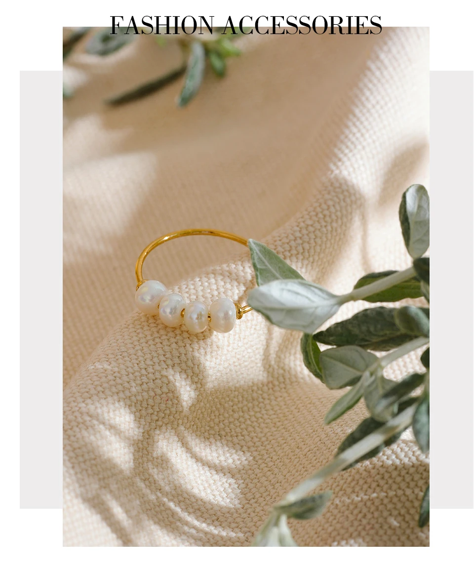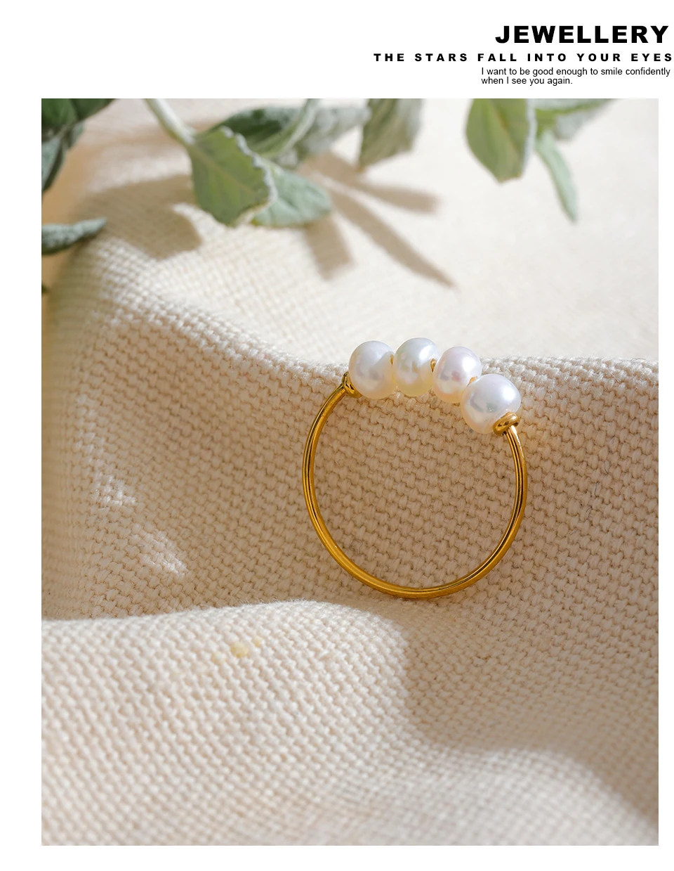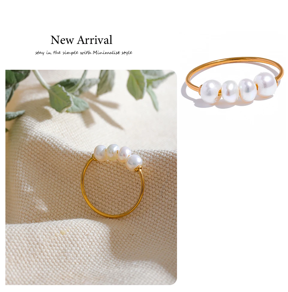 Yhpup Natural Freshwater Pearls Gold Color Stainless Steel Waterproof Thin Index Finger Ring for Women PVD Plated Charm Jewelry