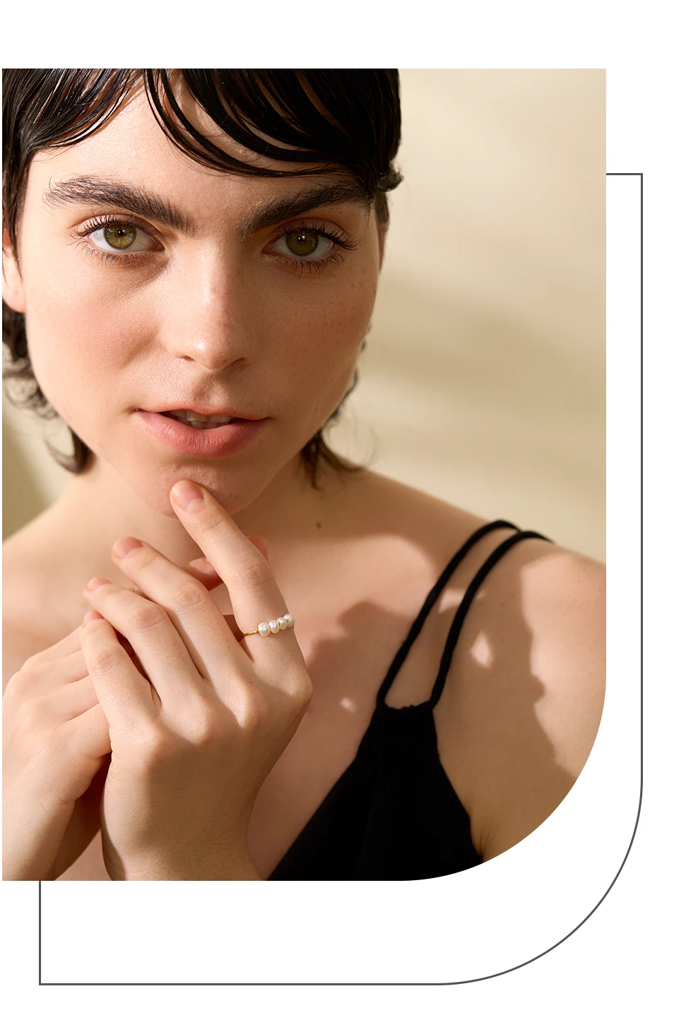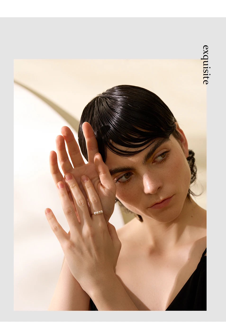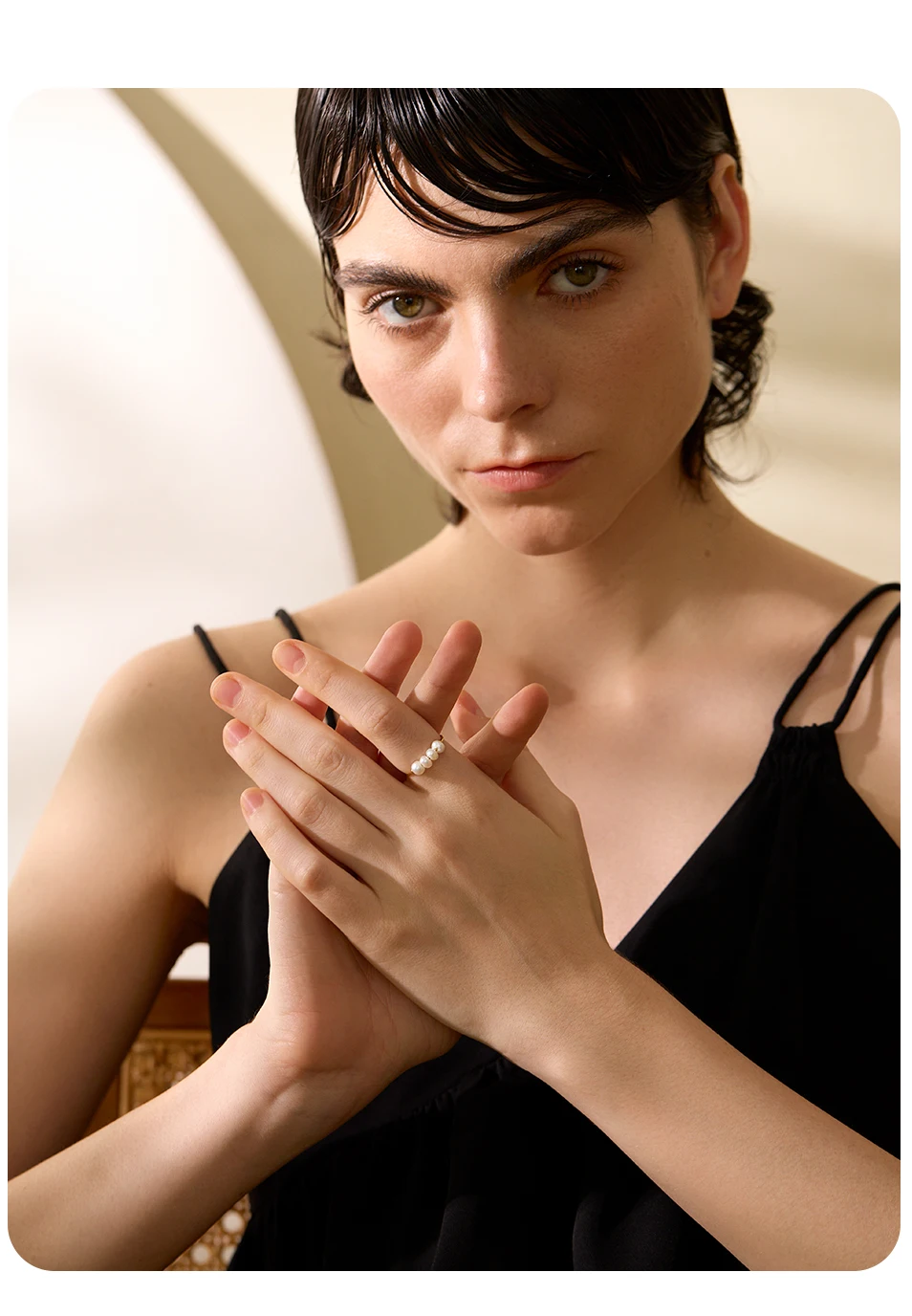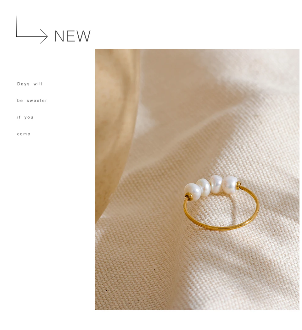 Yhpup Natural Freshwater Pearls Gold Color Stainless Steel Waterproof Thin Index Finger Ring for Women PVD Plated Charm Jewelry