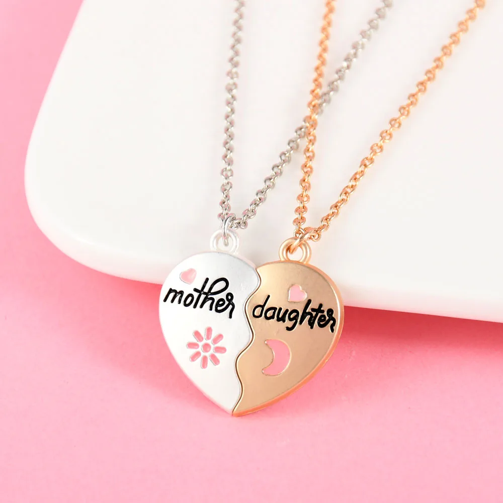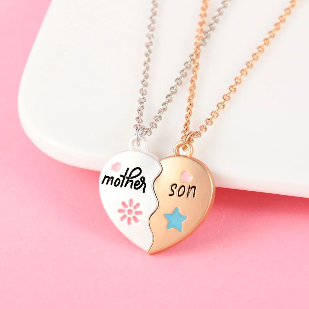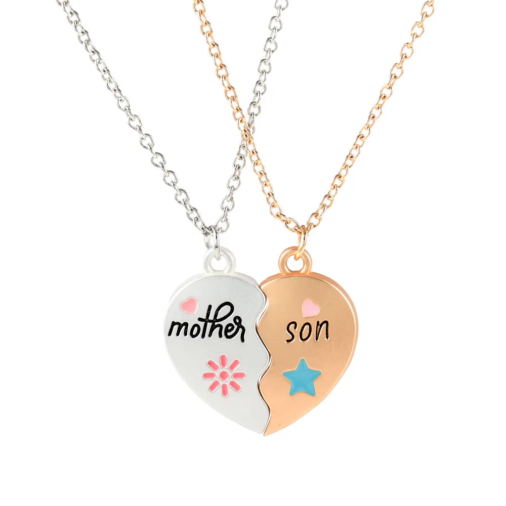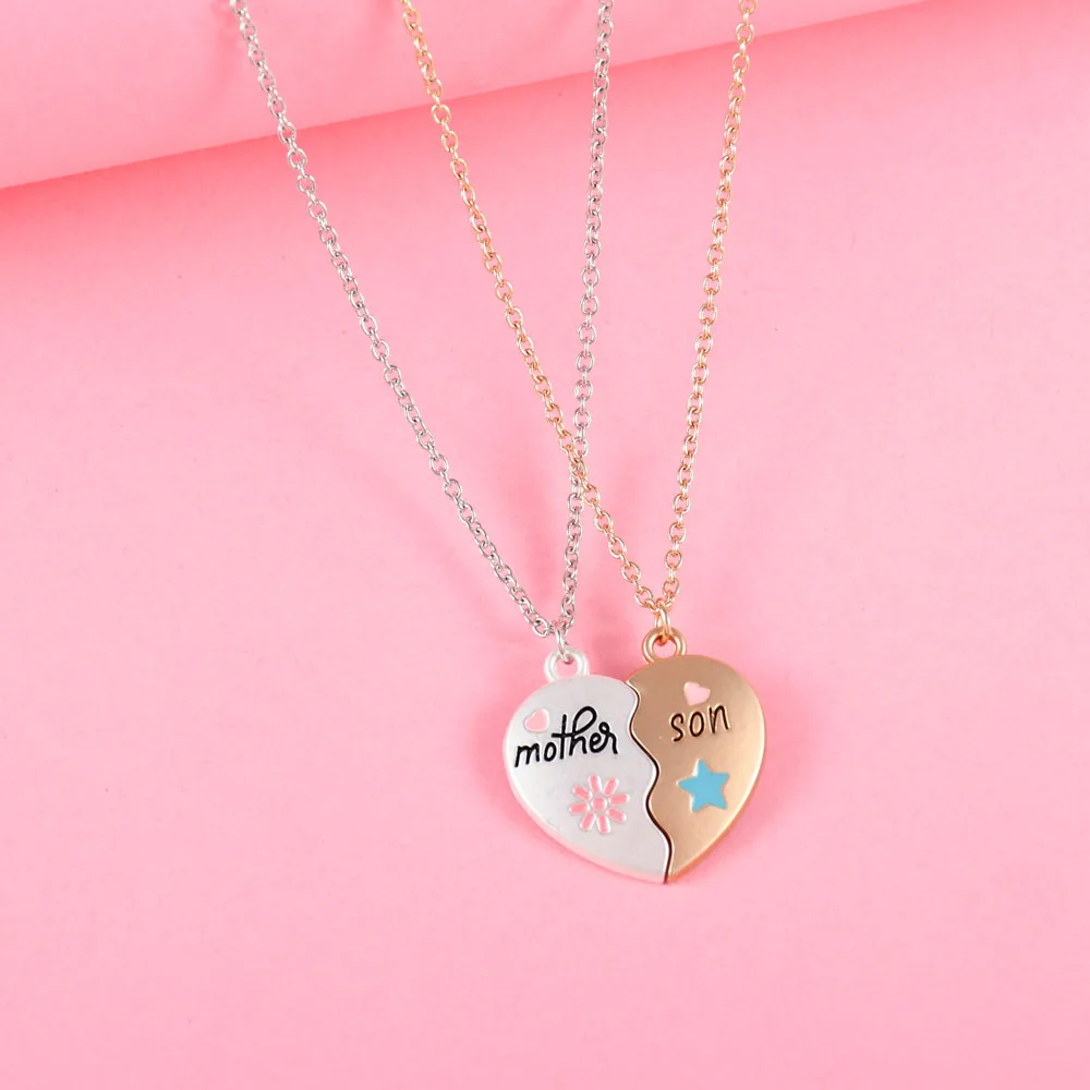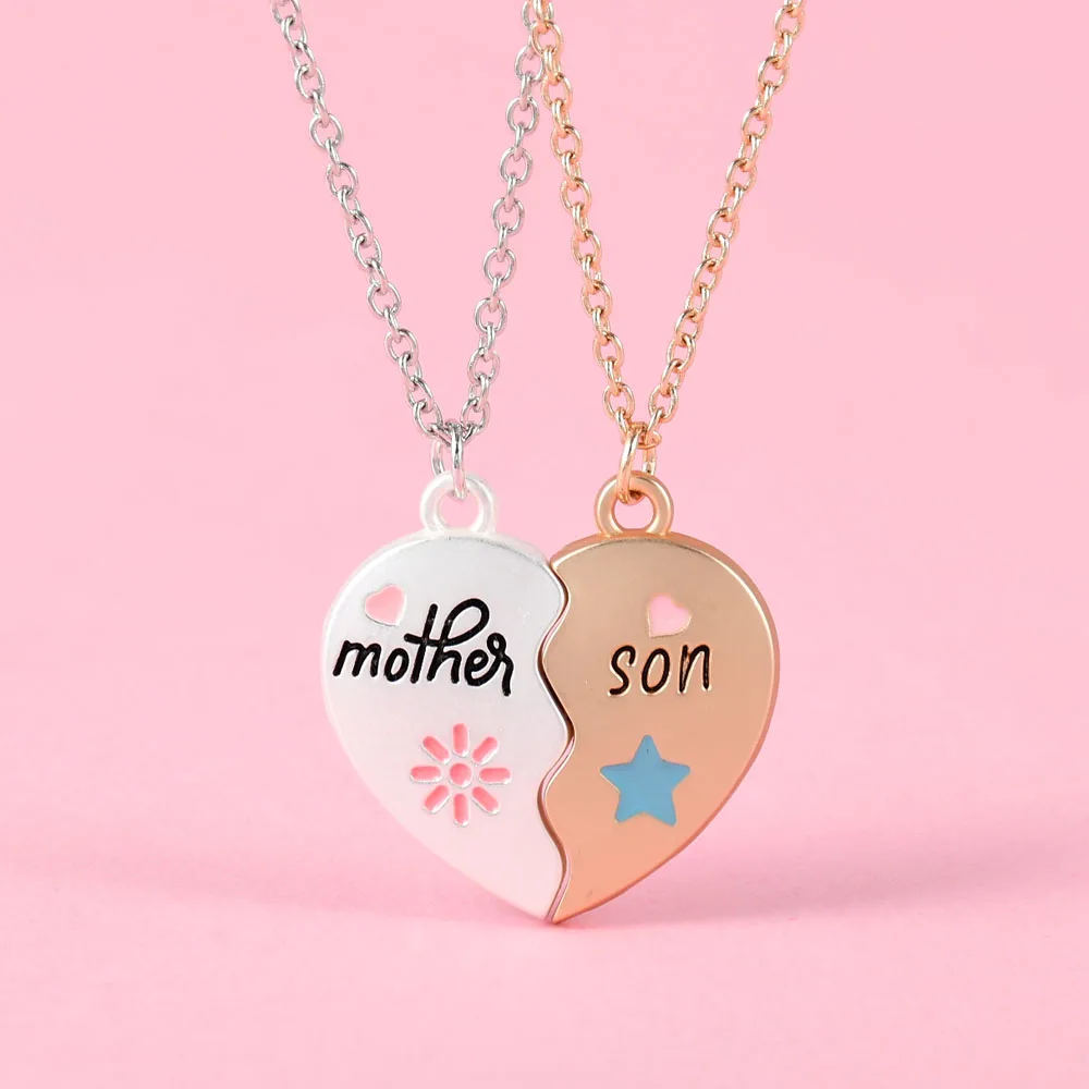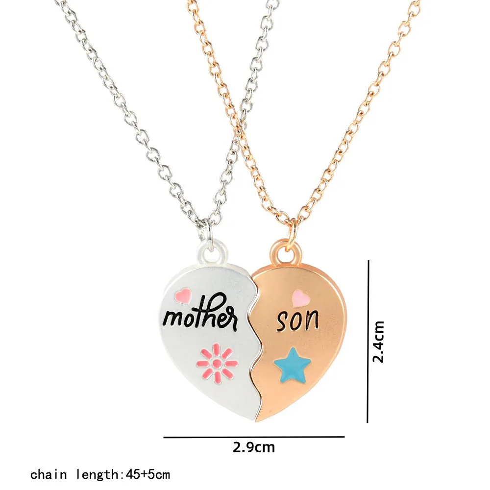 Lovecryst 2Pcs/set Heart-shaped Letter Mother and Son or Daughter Mother's Day Necklace for Love Parent Child Jewelry Gifts