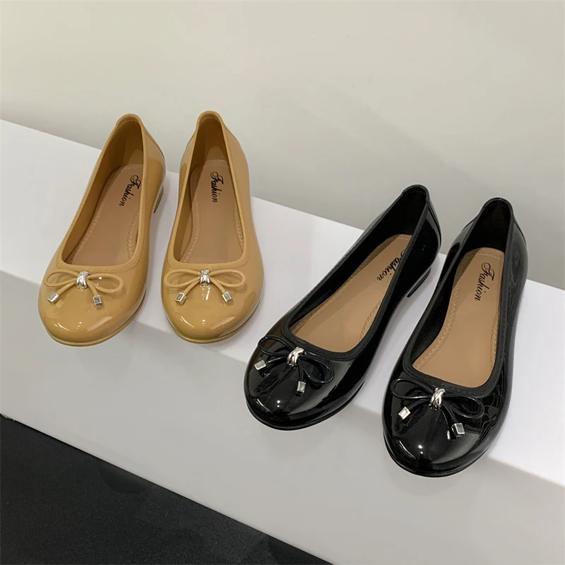 Women's New Summer PVC Wear Low Top Shallow Mouth Single Shoes Casual Fashion Bow Sandals