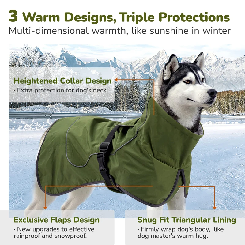 • Professional Warm Designs for Dogs Winter: The Triangular-shaped lining on the dog's chest can firmly wrap the dog's chest. The high collar and the two flaps under the collar can better withstand the wind and snow and always stay warm in the cold winter.