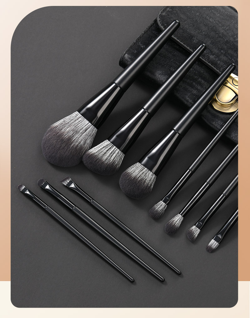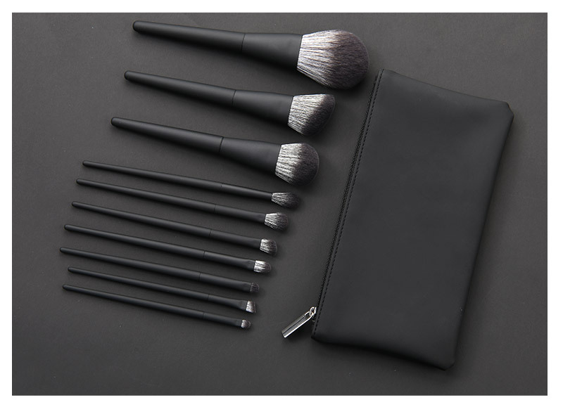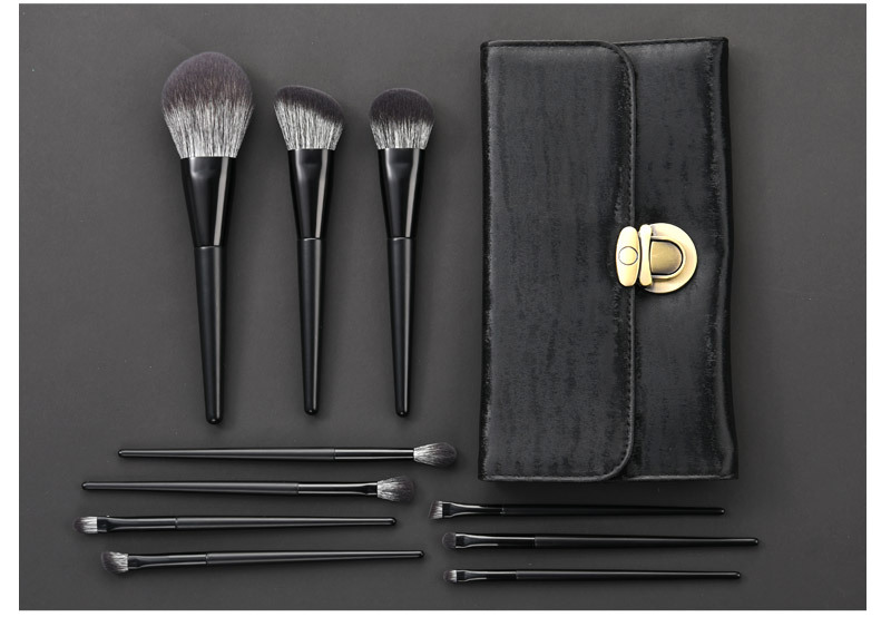 Complete Set: Includes 10 different brushes for various makeup applications like foundation, powder, and blush.