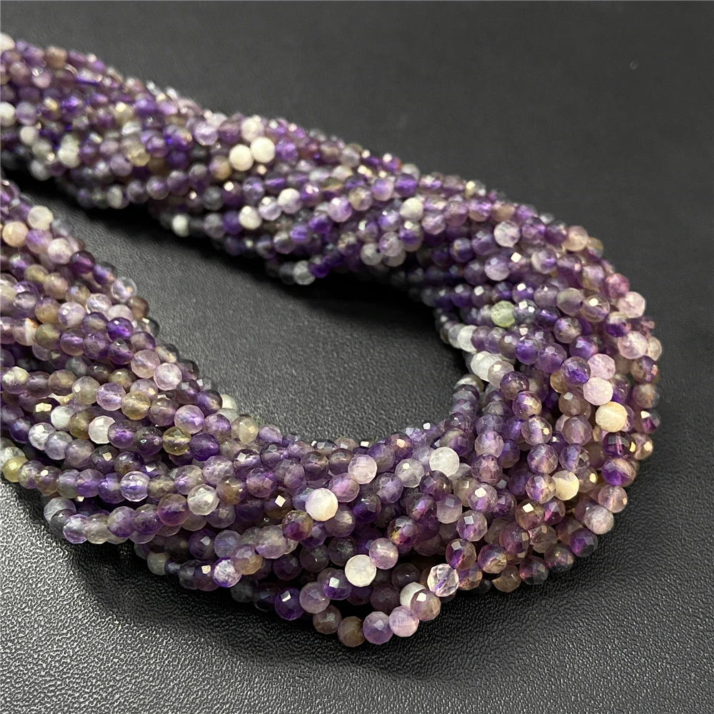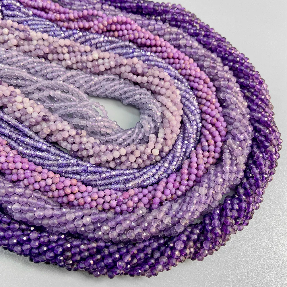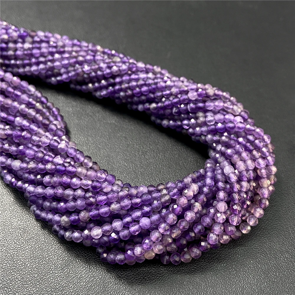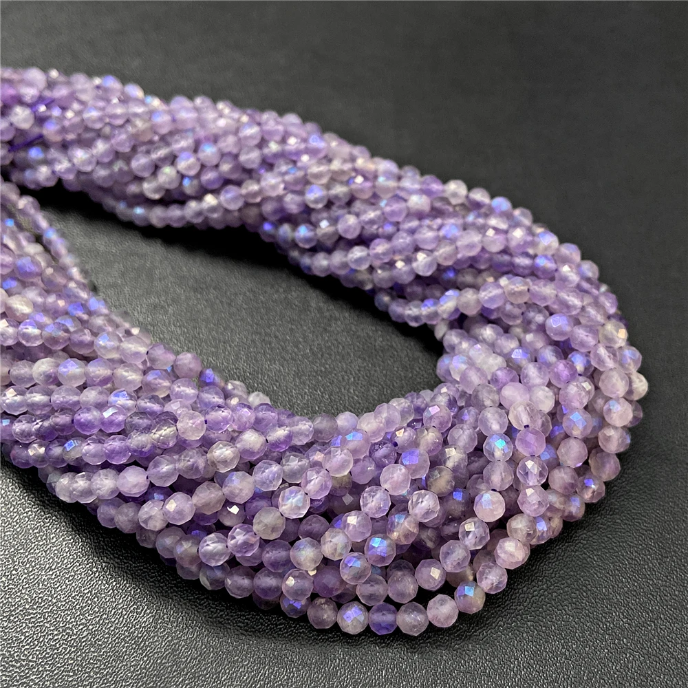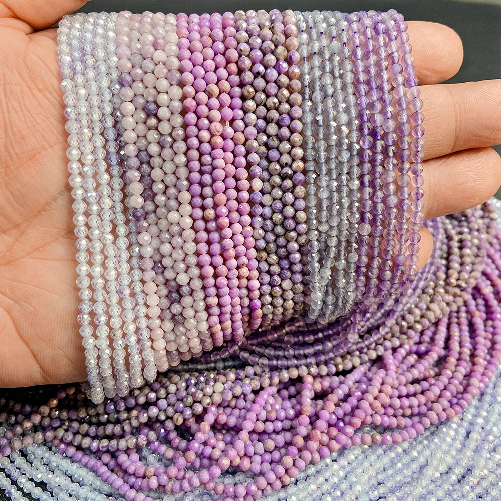 Purple Gem Beads Small Round Faceted Crystal Stone Beads Amethysts Crystal Mica Loose Beads For Jewelry Making DIY Necklace 15"