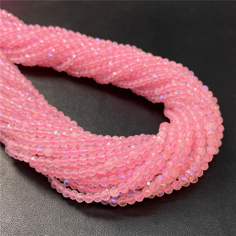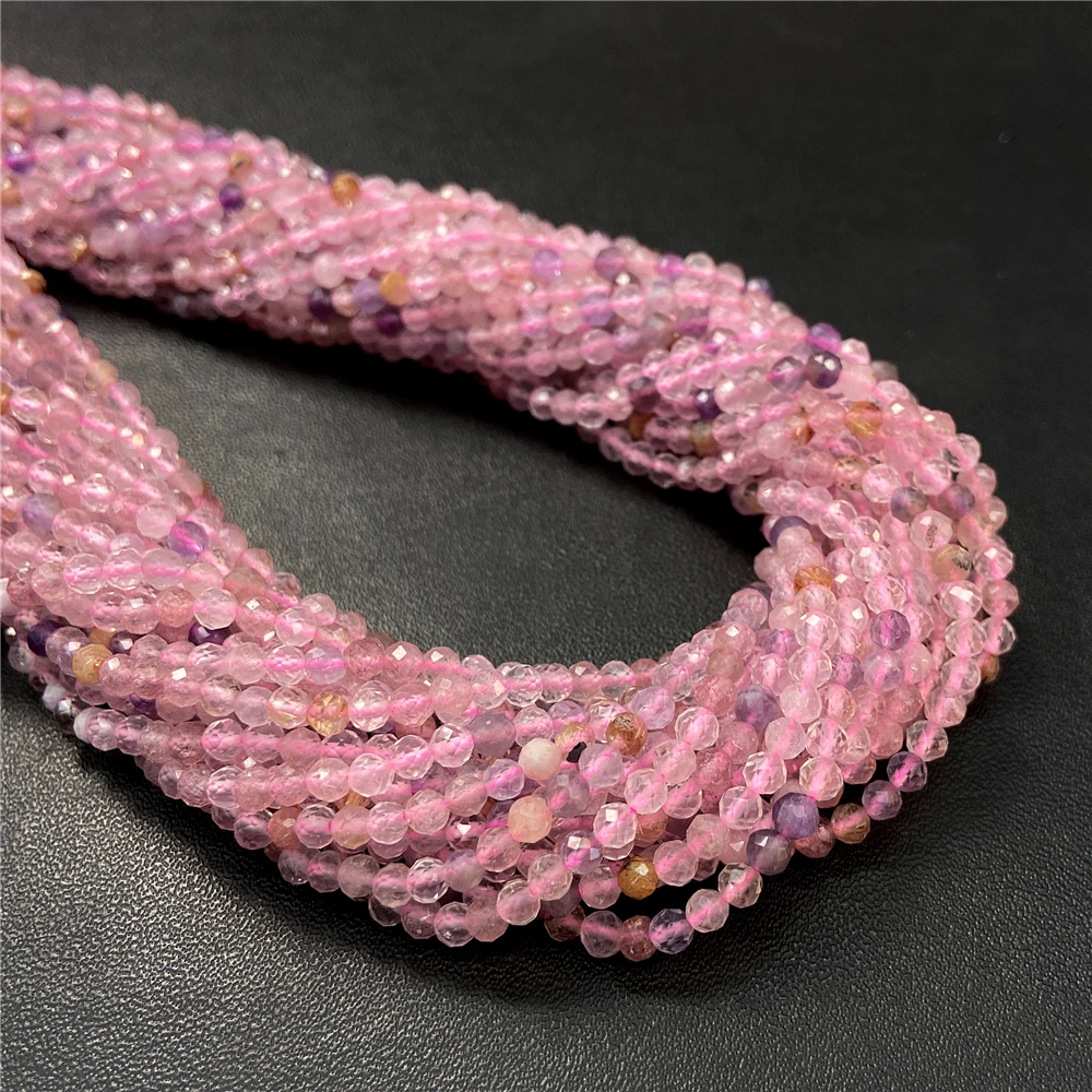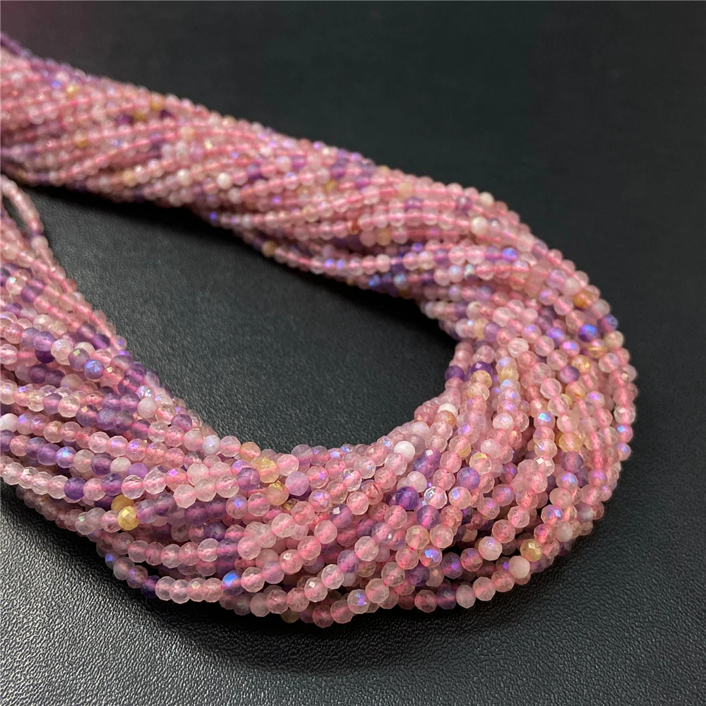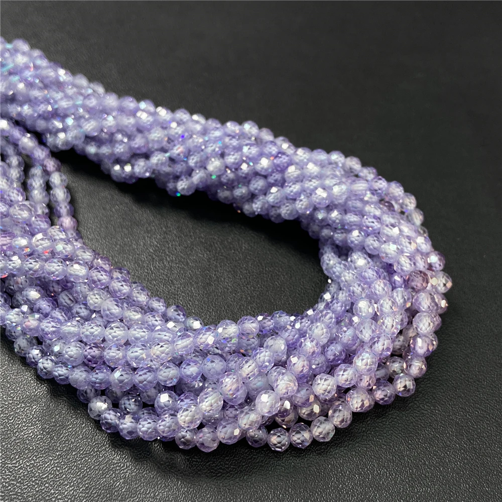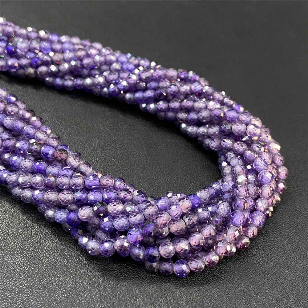 Purple Gem Beads Small Round Faceted Crystal Stone Beads Amethysts Crystal Mica Loose Beads For Jewelry Making DIY Necklace 15"